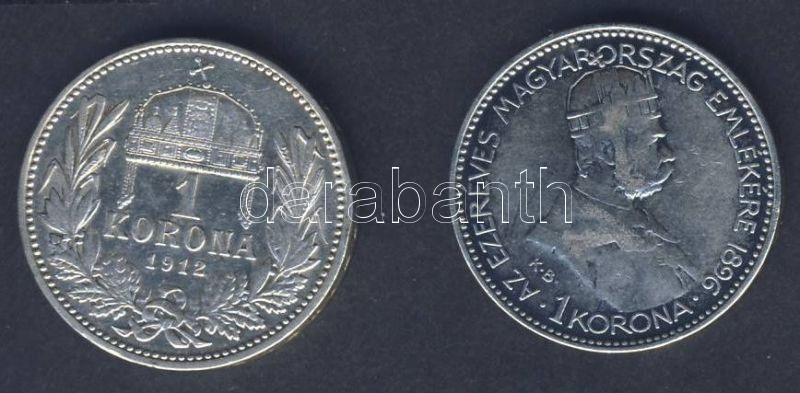 1896. 1K Ag "Millenium" T:2/3+ + 1912. 1K Ag T:3