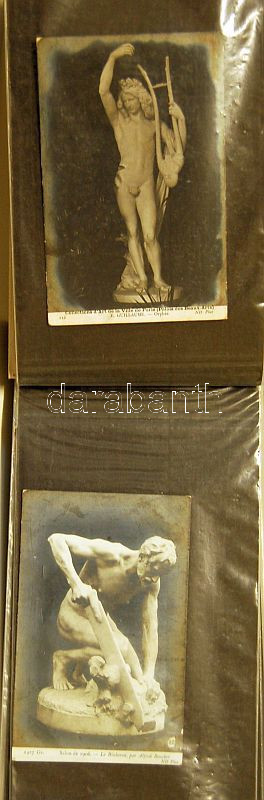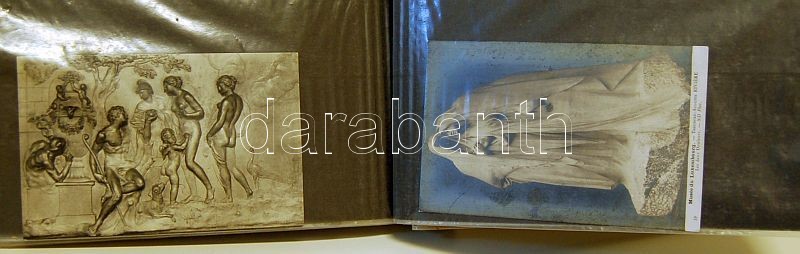 Szobrok régi képeslapokon, 31 db, levélberakóban