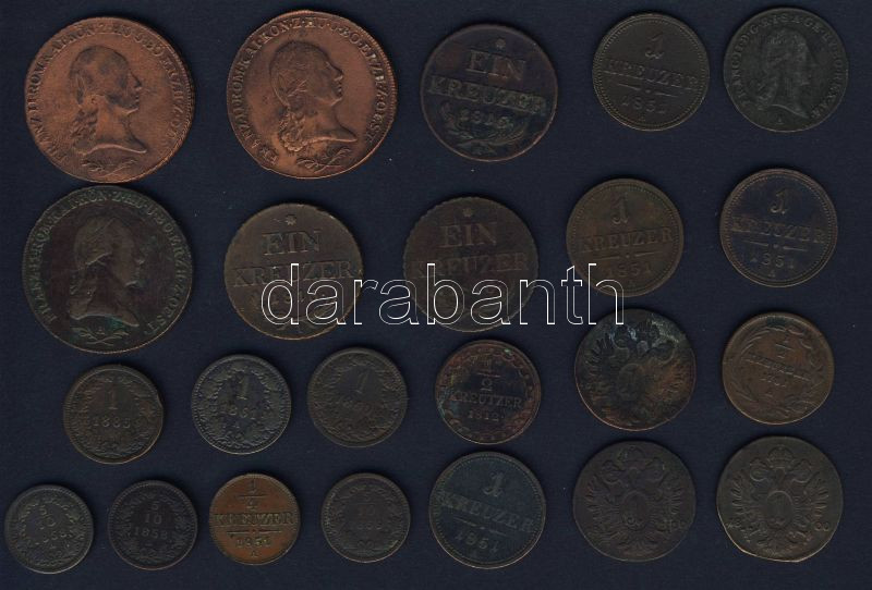 Ausztria kis tétel 1781-1885. 5/10Kr (3x) + 1/4Kr (1x) + 1/2Kr (2x) + 1Kr (14x) 4klf típusban + 6Kr (x) összesen 23db T:3,4