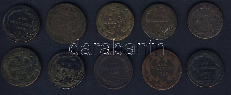 Ausztria/magyar verdejel 1760-1790. 1Kr klf típusokban (7x) + Ausztria 1760-1790. 1Kr (3x) T:3,3/4+
