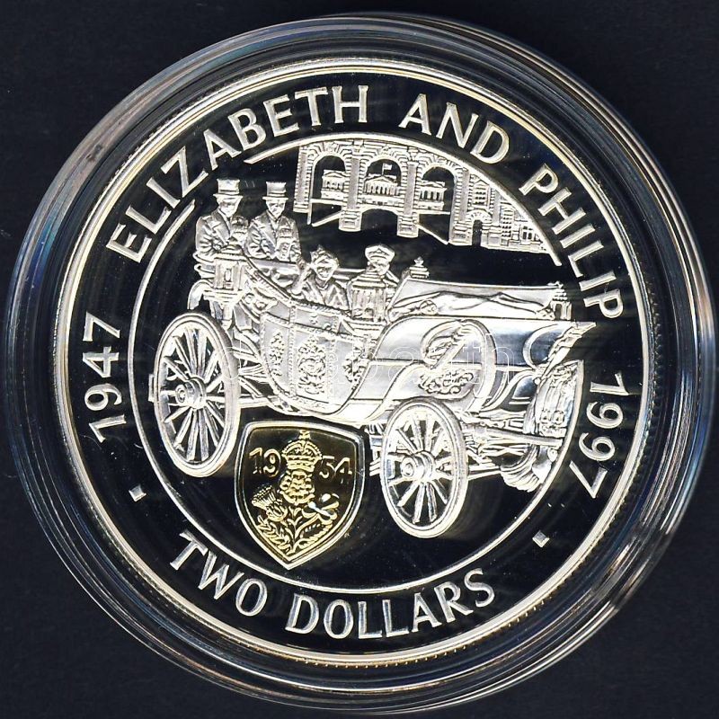 Kajmán szigetek 1997. 2$ Ag "Aranylakodalom" T:PP