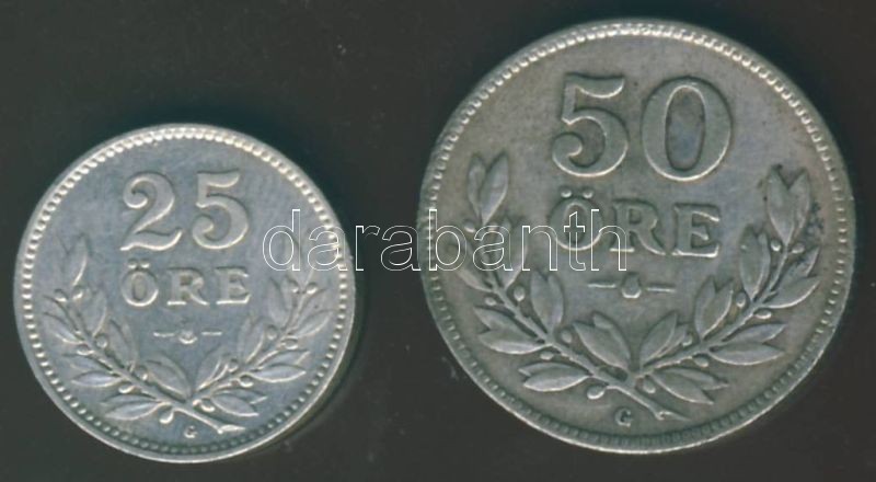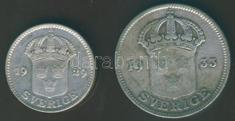Svédország 1929. 25ö Ag T:3+ + 1933. 50ö Ag T:3/3+