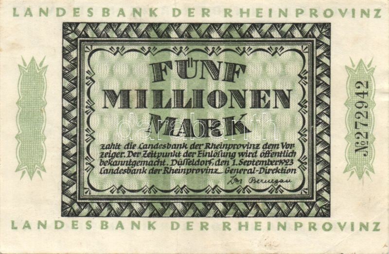 Német 3. Birodalom /Weimari Köztársaság/Poroszország/Rheinprovinz 1923. 5000000M T:II