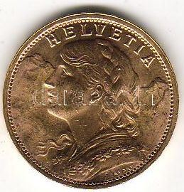 Svájc 1947B 20 Frank aranypénz / Gold 6,452 gr (0,900) T: kiváló