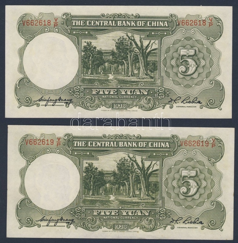 Kína/Köztársaság/Central Bank 1936. 5Y (5x) egymásutáni sorszámmal T:I