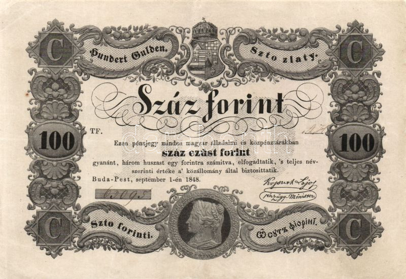 https://www.darabanth.com/en/90-Online-auction/90.0/Numismatics/~200025/1848-100Ft-Kossuth-banko-Tigen-kis-mertekben-szepen-restauralt~II198565