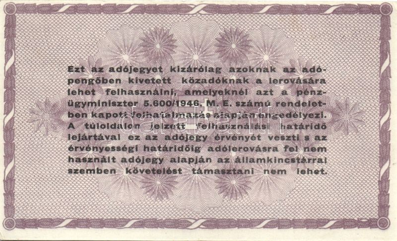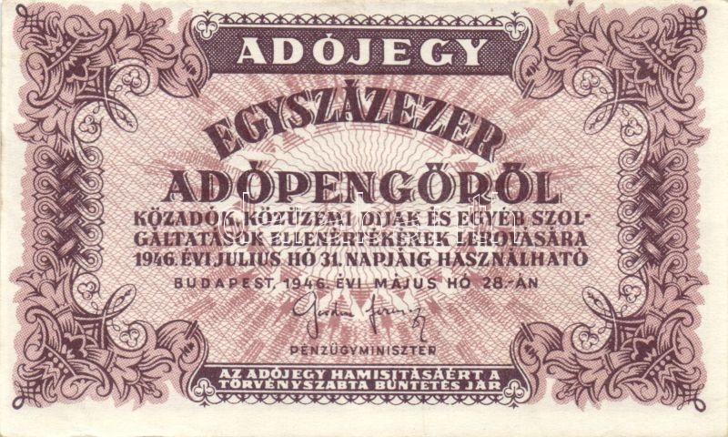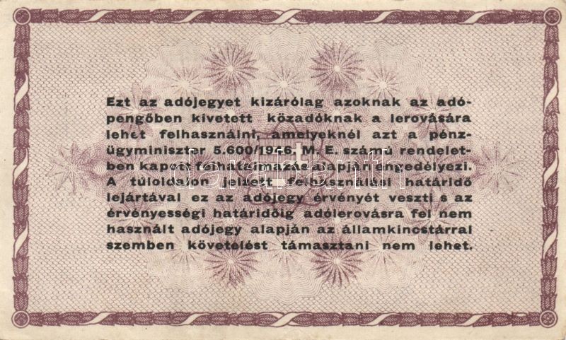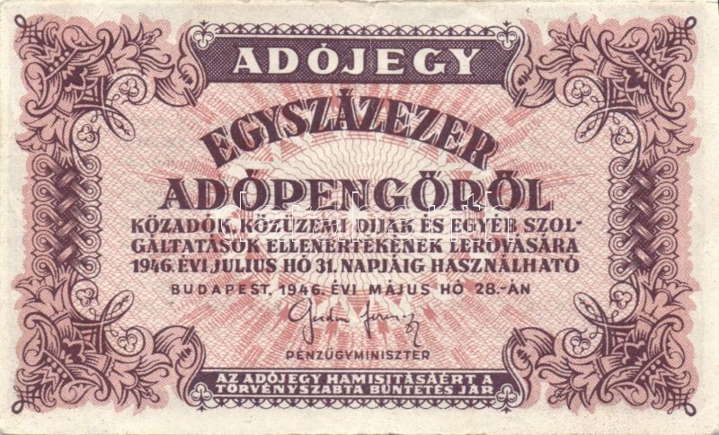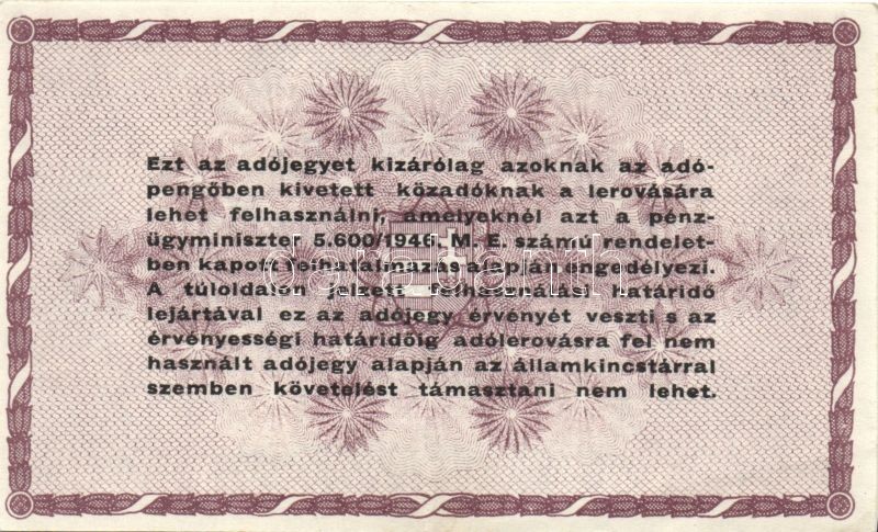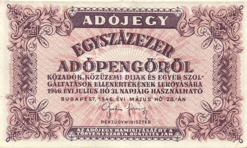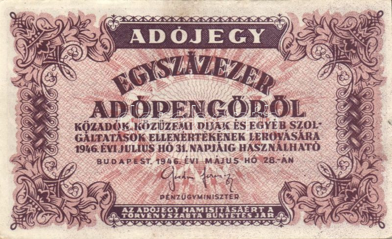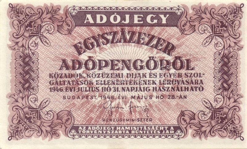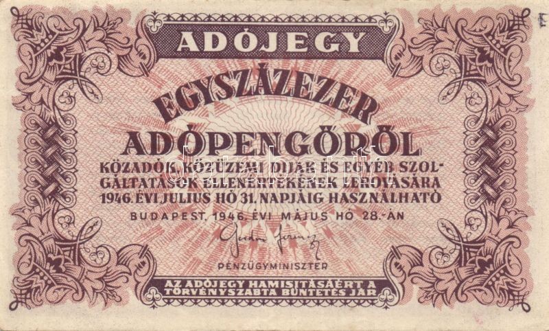 1946. 100000AP(7x) fehér papír, vj nélkül T:I-,II+,II,II-