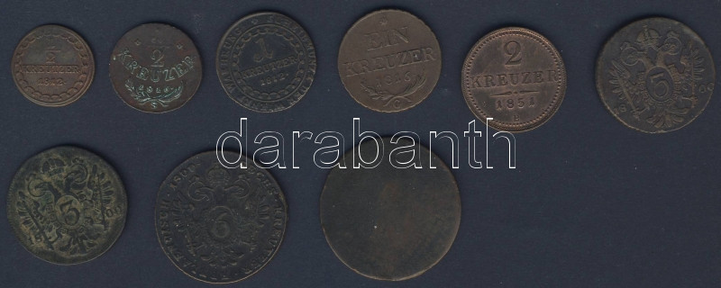 Ausztria/magyar verdejel kis tétel 1800-1851. 1/2Kr (2x) klf típusban + 1Kr (2x) klf típusban + 2Kr (1x) + 3Kr (2x) + 6Kr (1x) + 15Kr (1x) összesen 9db T:3,4