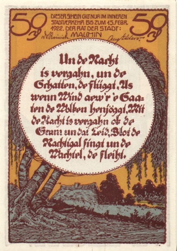 Német Birodalom/Weimari Köztársaság Malchin 1922. 10Pf + 25Pf + 50Pf 3...