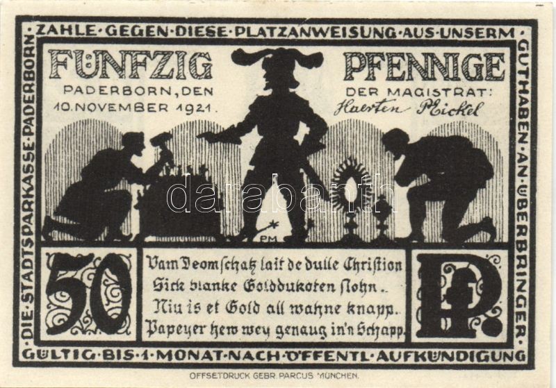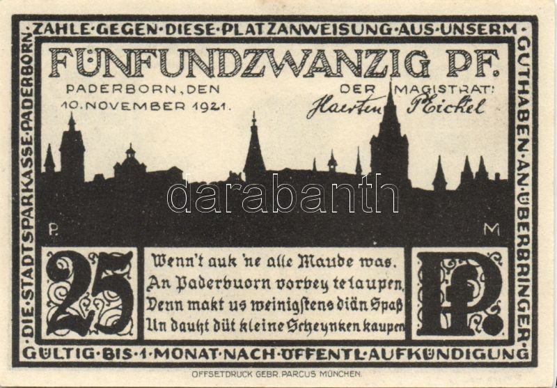 Német Birodalom/Weimari Köztársaság/ Paderborn 1921. 25Pf, 50Pf, 75Pf,...
