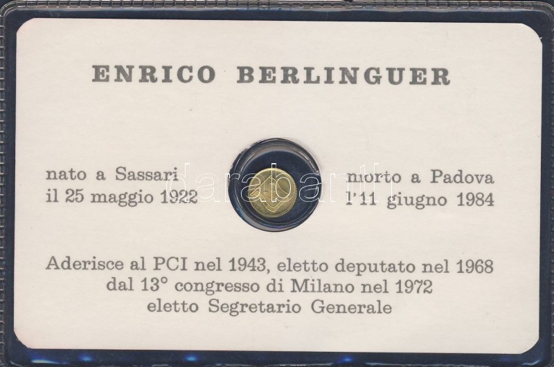 Olaszország modern Au mini érem "Enrico Berlinguer" 0,333-as minőségű ...