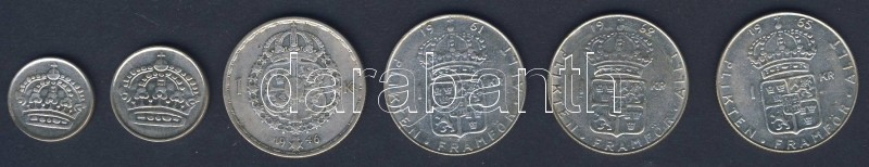 Svédország 1946-1965. 10ö Ag (1x), 25ö Ag (1x), 1K Ag (4x) mind klf évszám T:2,2/3,3