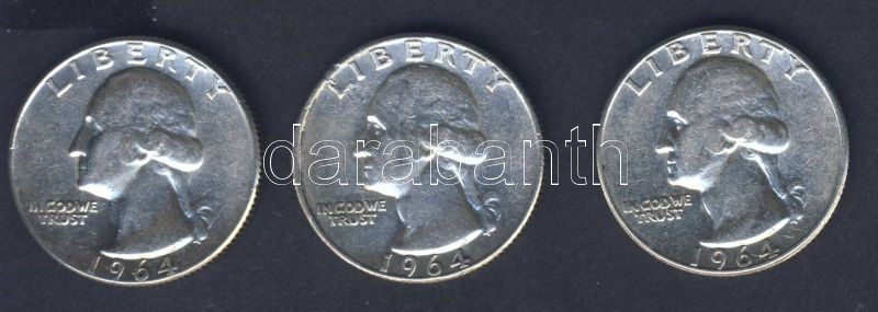 USA 1964. 1/4$ Ag "Washington" (3x) T:3 ph.