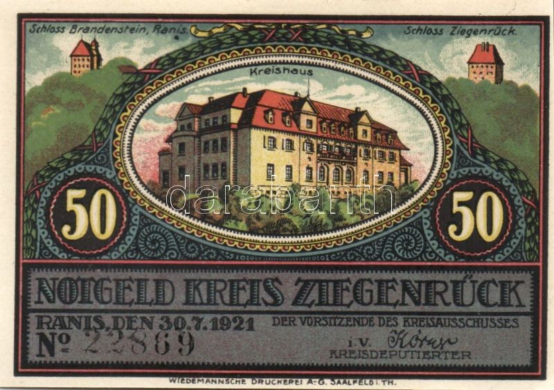 Német Birodalom/Weimari Köztársaság/Ziegenrück 1921. 50Pf (6x) mind kl...