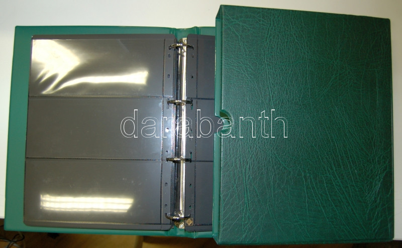 Leuchtturm gyűrűs berakó, 25db 3-as osztású berakólappal, összesen 150 férőhellyel! Tokkal, zöld színben, újszerű állpotban!
