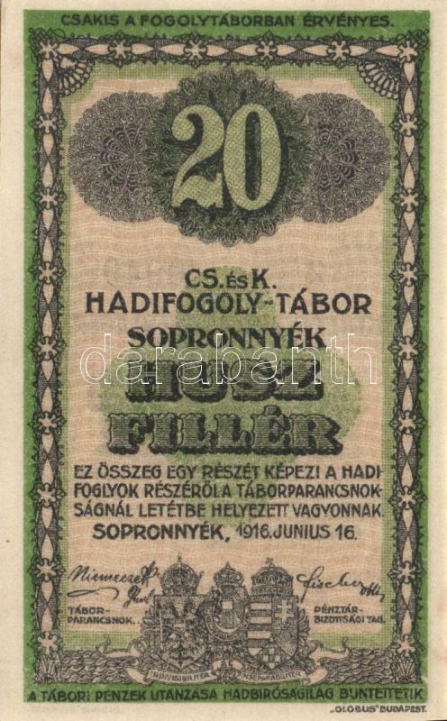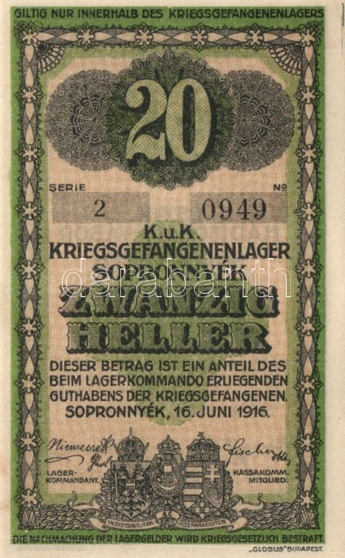https://www.darabanth.com/en/92-Online-auction/92.0/Numismatics/~294/Sopronnyekhadifogolytabor-1916-20f-TI~II207349