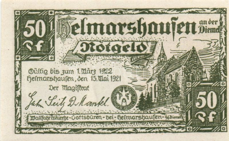 Német Birodalom/Weimari Köztársaság/ Helmarshaufen 1921. 50Pf + 1M + 2...