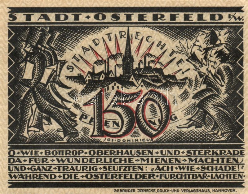 Német Birodalom/Weimari Köztársaság Osterfeld 1921. 50Pf (2x) + 75Pf + 100Pf + 150Pf (2x) öszesen:6klf, teljes sor T:I