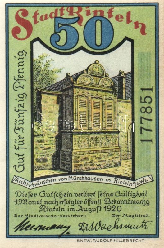 Német Birodalom/Weimari Köztársaság/ Rinteln 1920. 25Pf + 50Pf + 1M 3klf db, teljes sor T:I