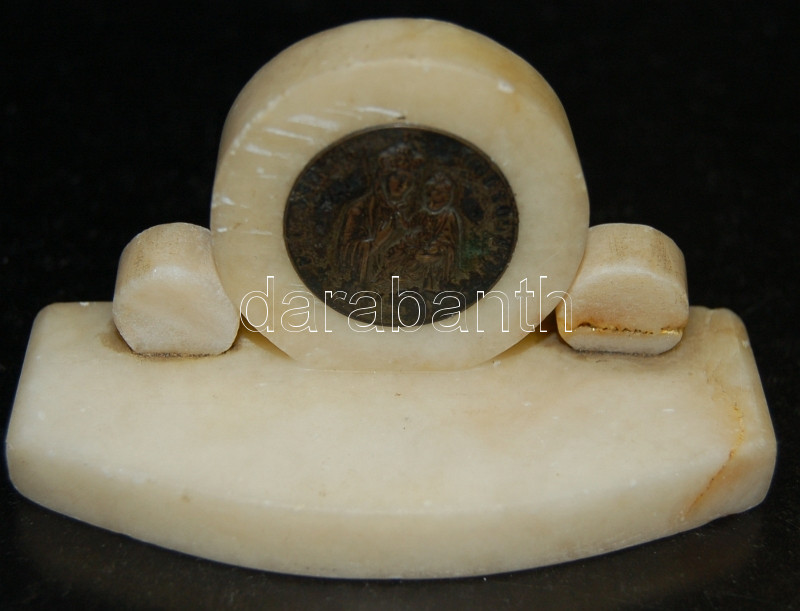 "Szűz Mária a kis Jézussal" Br emlékérem zsírkőre kasírozva, levélnehezékként