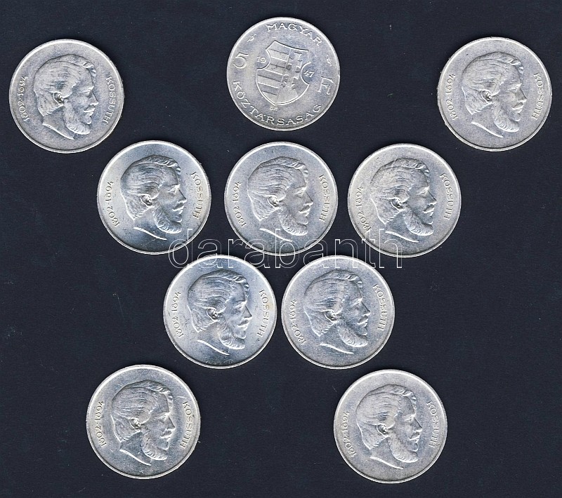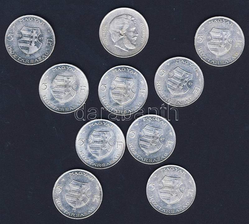 https://www.darabanth.com/en/92-Online-auction/92.0/Numismatics/~305/1947-5Ft-Ag-Kossuth-10x-T3~II206386