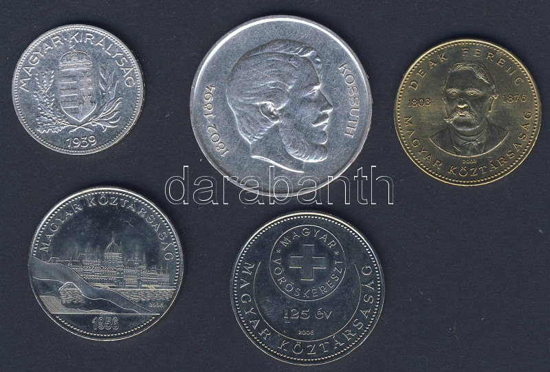 https://www.darabanth.com/en/92-Online-auction/92.0/Numismatics/~305/Kis-tetel-1939-1P-Ag-plus-1947-5Ft-Ag-Kossuth-plus-2003-20Ft-Deak-plus-2006-50Ft-Voroskereszt-~II205525