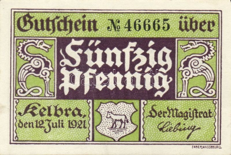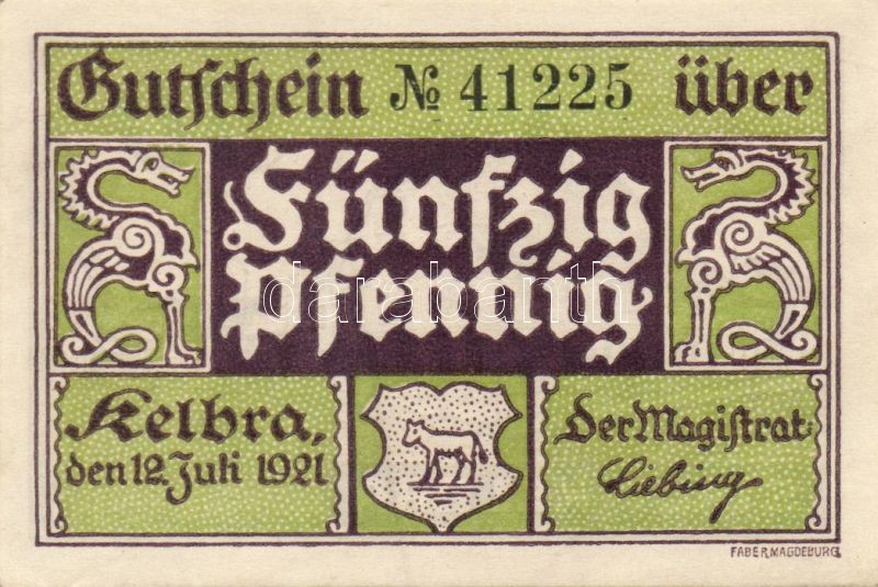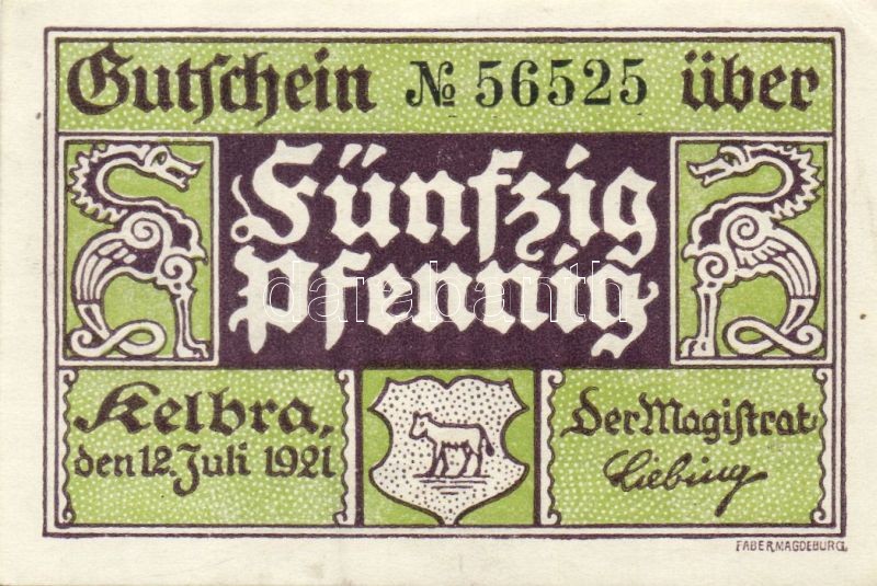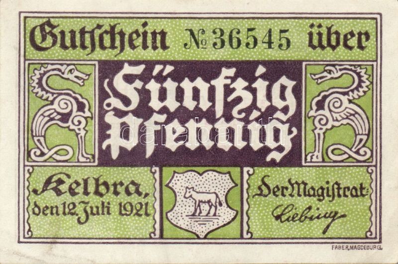 Német Birodalom/Weimari Köztársaság/ Kelbra 1921. 50Pf(6x) 6klf db, te...