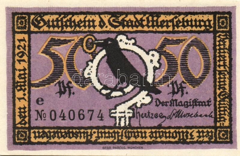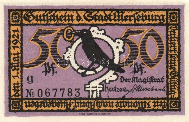 Német Birodalom/Weimari Köztársaság/ Merseburg 1921. 5Pf + 10Pf + 20Pf + 50Pf (6x) összesen 10klf db, teljes sor T:I