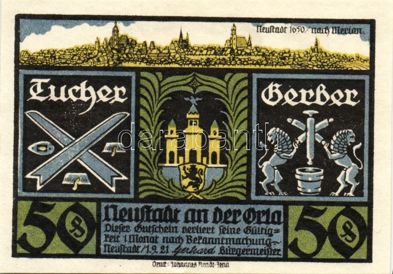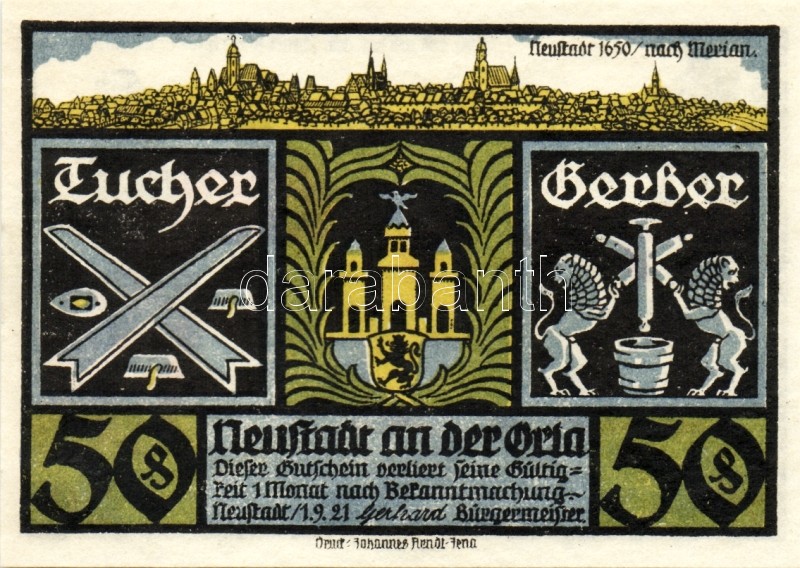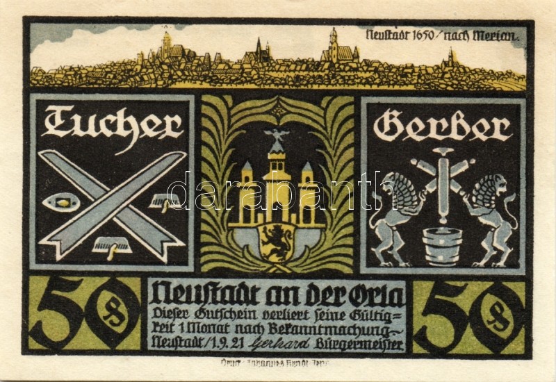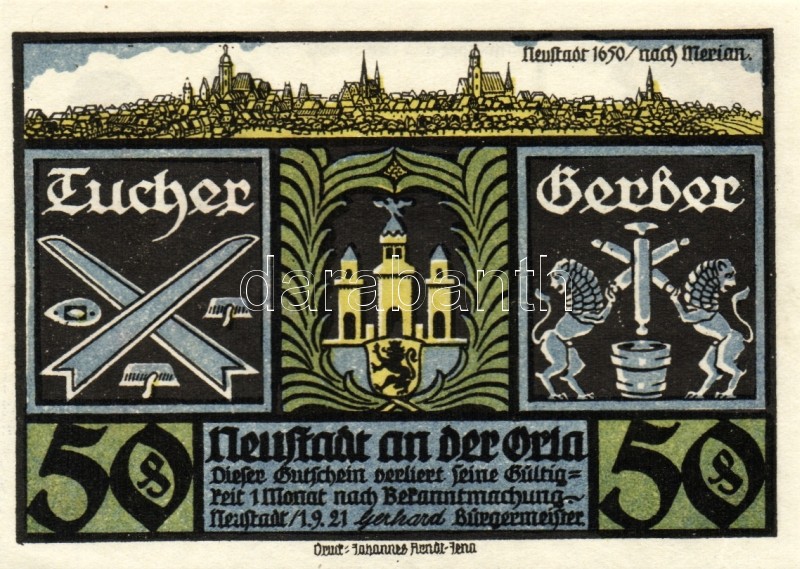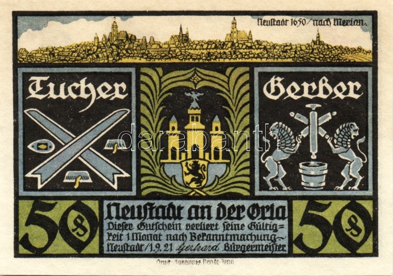 Német Birodalom/Weimari Köztársaság/ Neustadt 1921. 50Pf(6x) 6klf db, ...