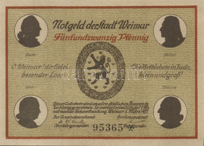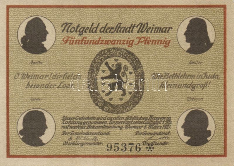 Német Birodalom/Weimari Köztársaság/ Weimar 1921. 25Pf(6x) 6klf db, te...
