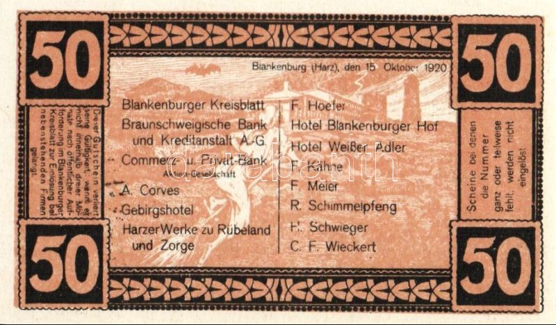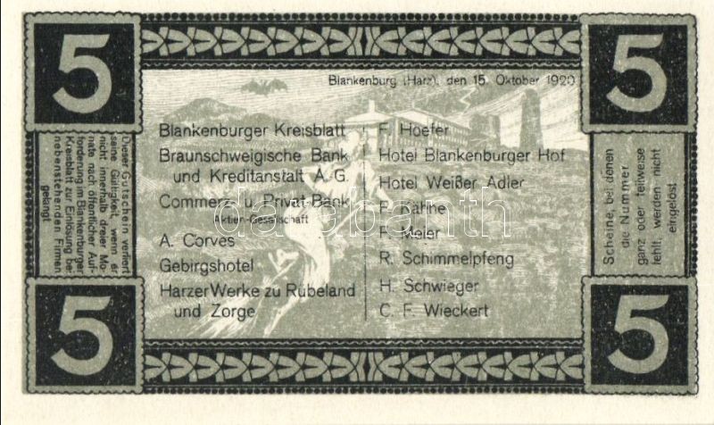 Német Birodalom/Weimari Köztársaság/Blankenburg am Harz 1920. 5Pf, 10P...