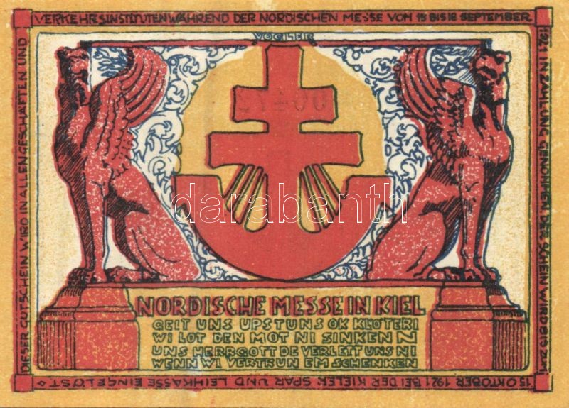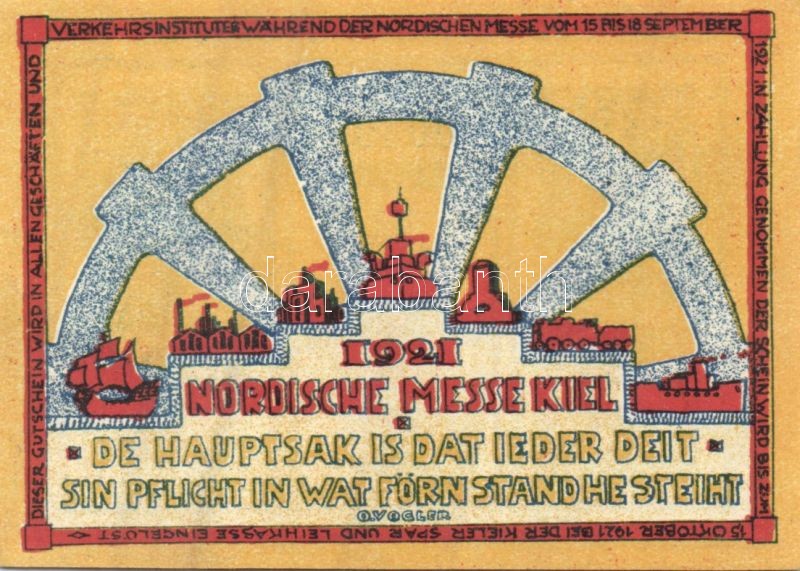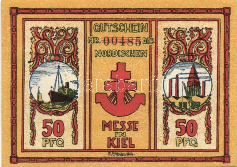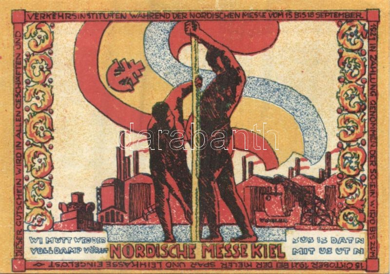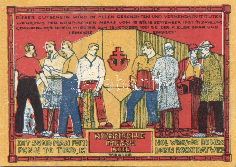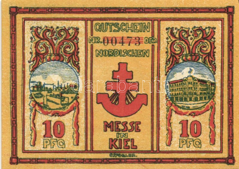 Német Birodalom/Weimari Köztársaság/Kiel 1921. 10Pf + 25Pf + 50Pf + 1M + 4klf db, teljes sor T:I