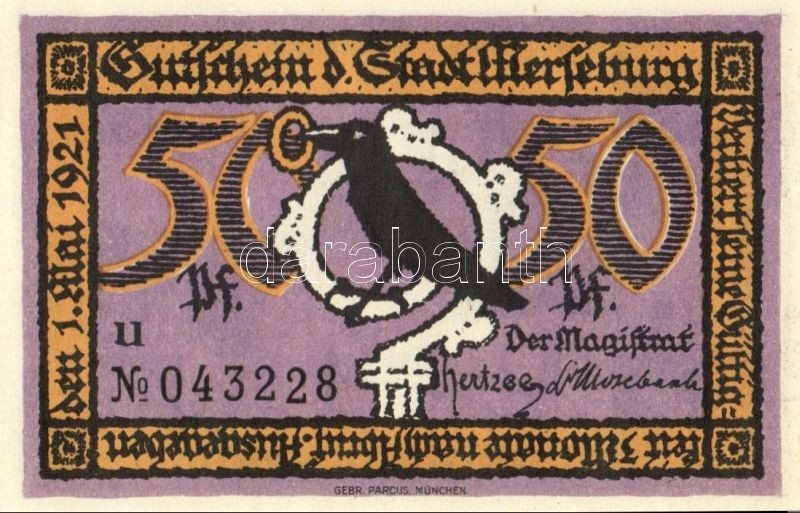Német Birodalom/Weimari Köztársaság/Merseburg 1921. 5Pf, 10Pf, 20Pf, 25Pf, 50Pf (6x) 10klf db, teljes sor T:1