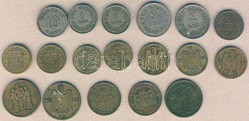 Románia kis tétel 1900-1947. 10B (1x), 1L (2x), 2L (3x) 2klf, 5L (4x), 10L (3x), 20L (2x) 2klf, 2000L (2x), 10.000L (1x) T:3,3+ Összesen 18db!
