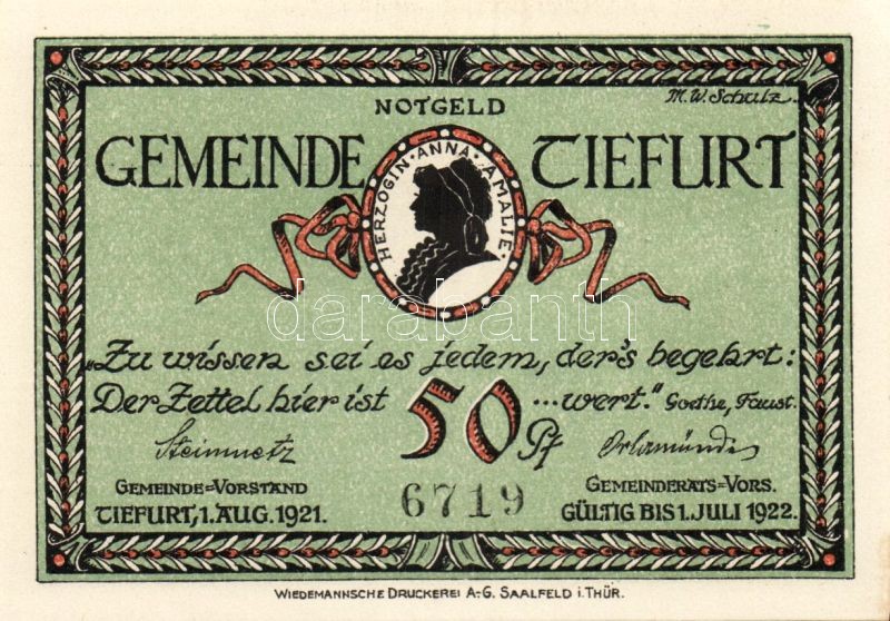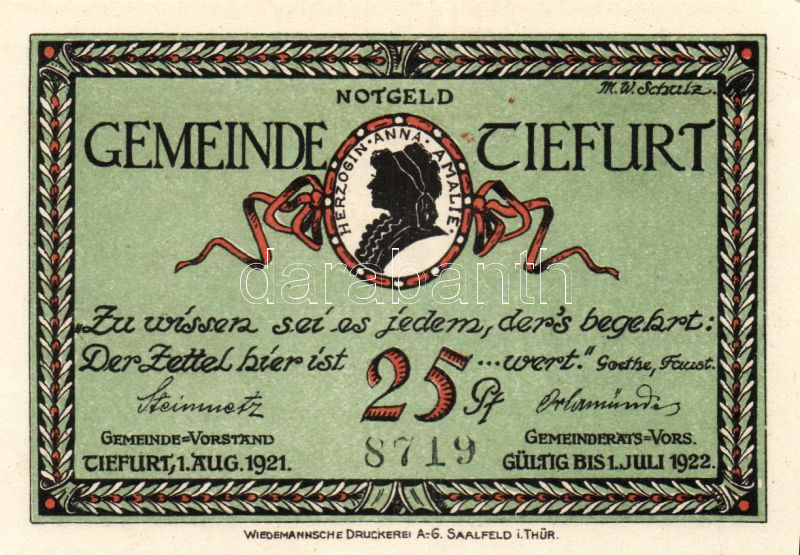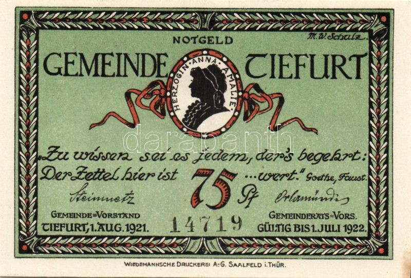 Német Birodalom/Weimari Köztársaság/Tiefurt 1921. 25Pf, 50Pf (2x), 75P...