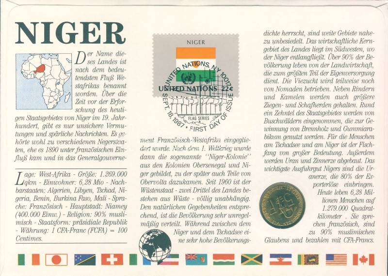 Nyugat-Afrikai Államok 1972. 5Fr érmés, bélyeges borítékon "Niger" T:1