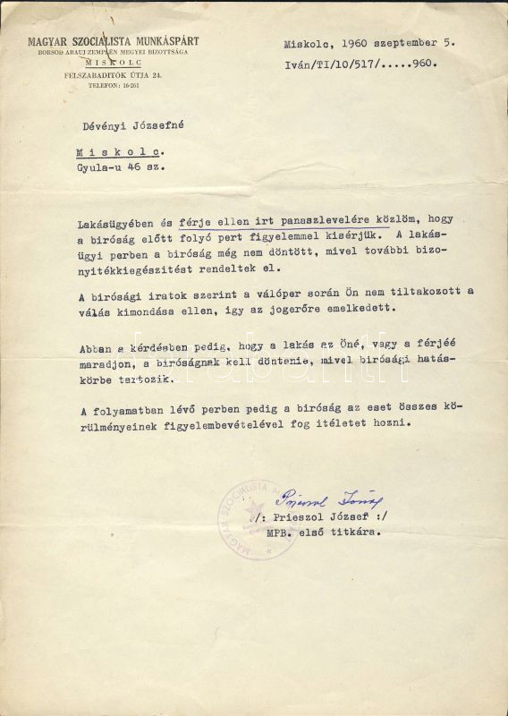 https://www.darabanth.com/en/94-Online-auction/94.0/Other-collectibles/~258/1960-MSZMP-irat-Prieszol-Jozsef-KB-tag-kozlekedesi-miniszterhelyettes-alairasaval~II215705