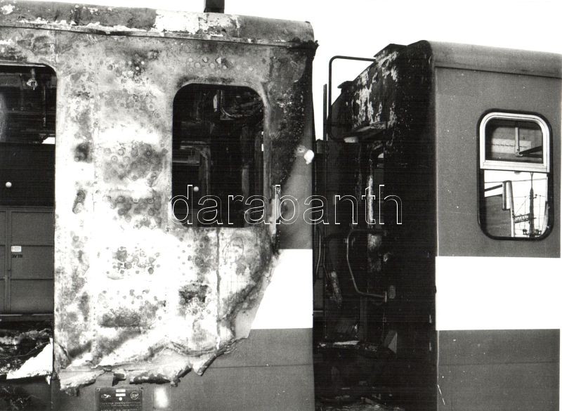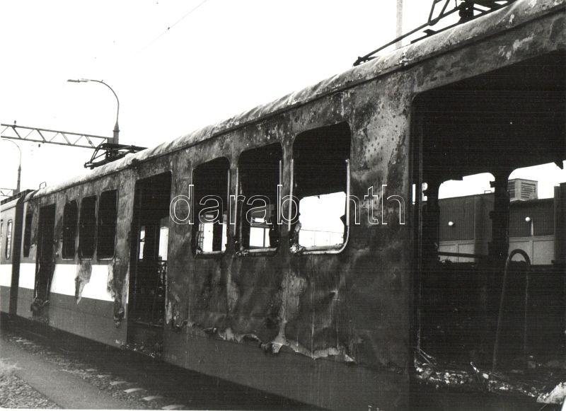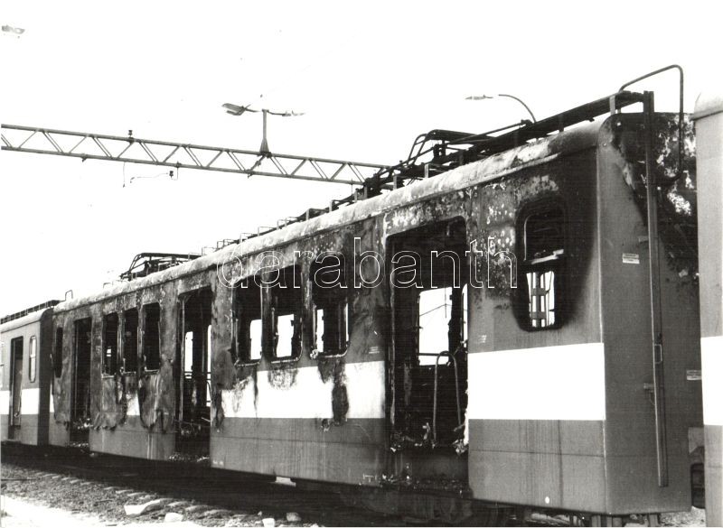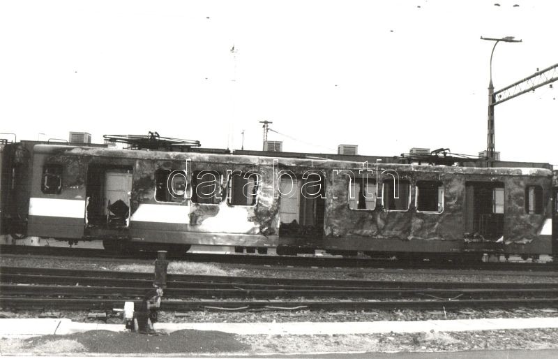 8 db helyszínelő fotó kiégett HÉV szerelvényről