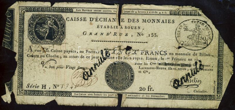 Franciaország / Rouen 1797-1803. 20Fr T:IV- R!