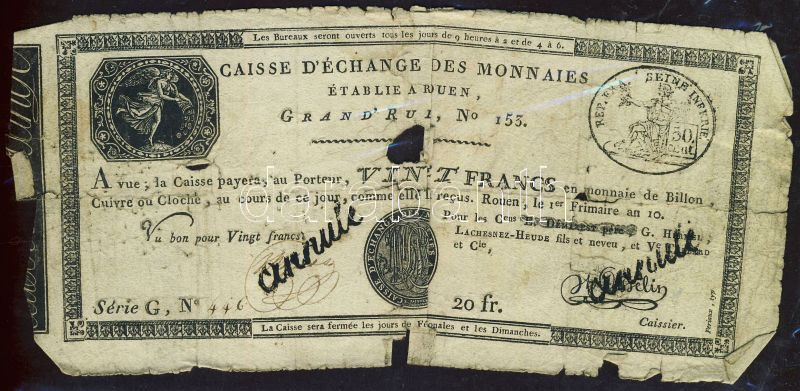 Franciaország / Rouen 1797-1803. 20Fr T:IV- R!