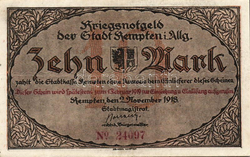 Német Birodalom/Császárság/ Kempten 1918. 10M(2x) egymásutáni sorszámmal T:II