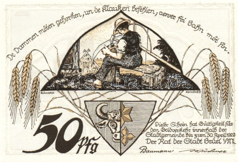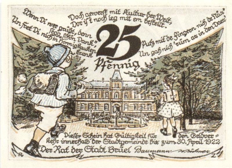 Német Birodalom/Weimari Köztársaság/ Brüel 1922. 10Pf + 25Pf + 50Pf 3k...