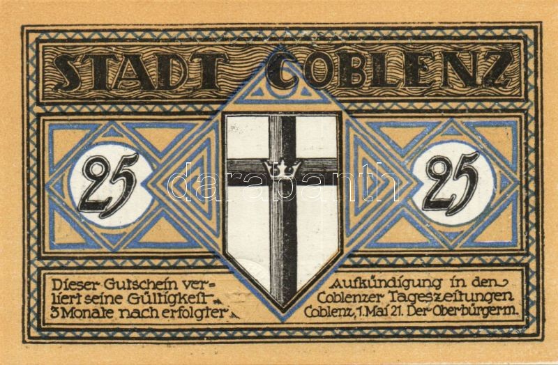 Német Birodalom/Weimari Köztársaság/ Coblenz 1921. 25Pf + 50Pf(3x) 4kl...