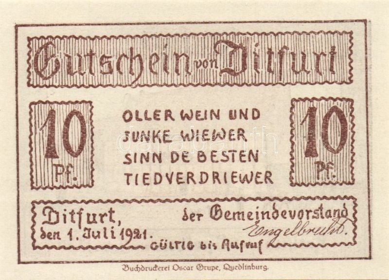 Német Birodalom/Weimari Köztársaság/ Ditfurt 1921. 10Pf + 25Pf + 50Pf ...