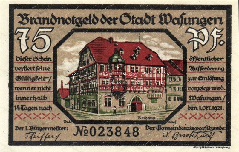 Német Birodalom/Weimari Köztársaság/ Wasungen 1921. 50Pf(4x) + 75Pf(2x...