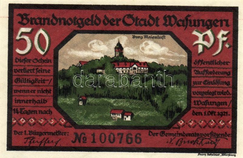 Német Birodalom/Weimari Köztársaság/ Wasungen 1921. 50Pf(4x) + 75Pf(2x) 6klf db, teljes sor T:I