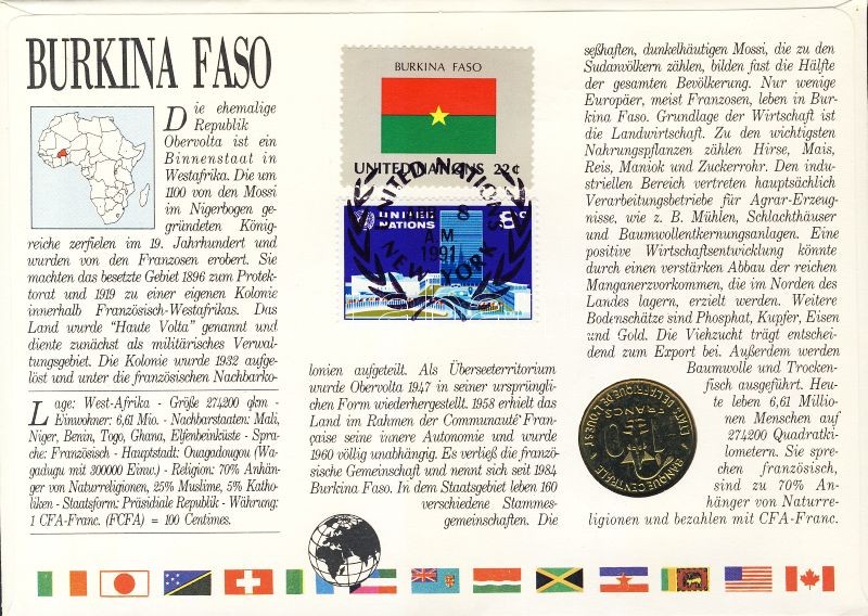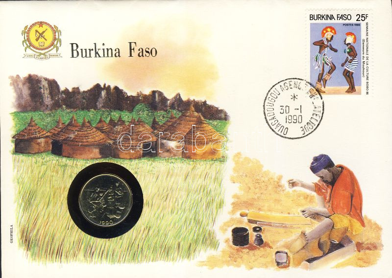 Nyugat-Afrikai Államok/Burkina Faso 1990. 10F érmés, bélyeges borítéko...