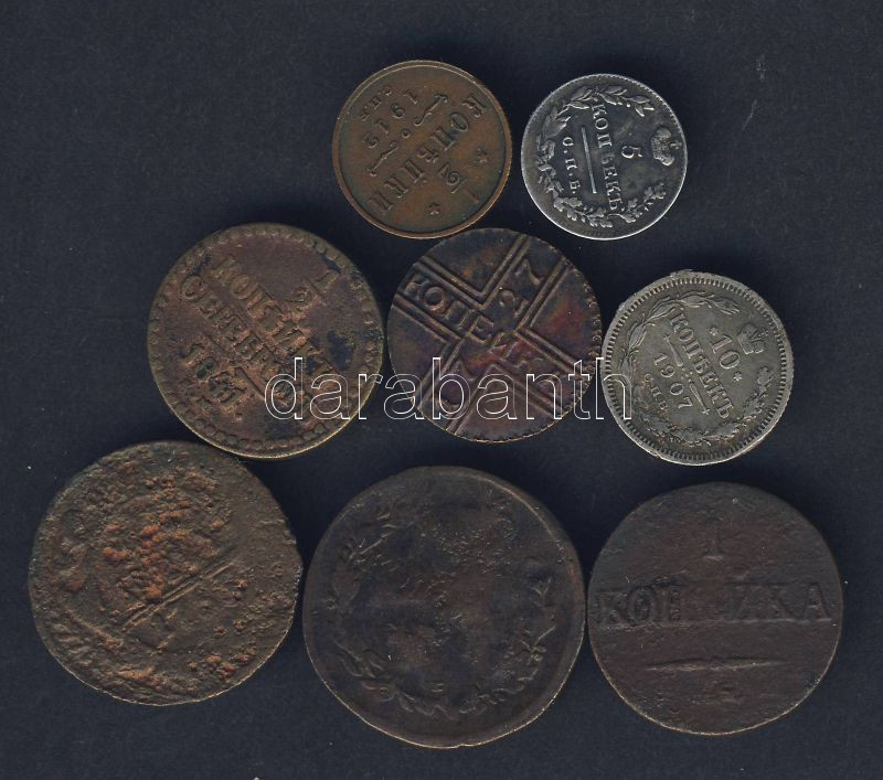 Oroszország 1727-1912. 8klf váltópénz, benne 2db Ag és múzeumi utánver...