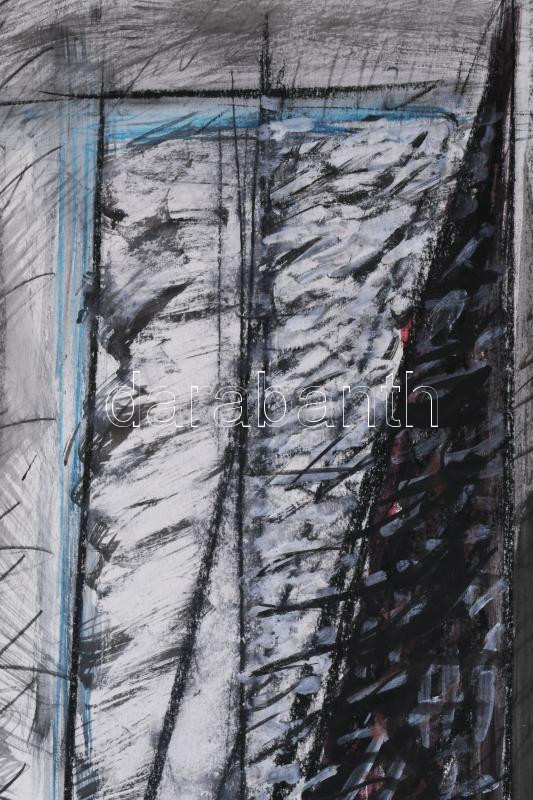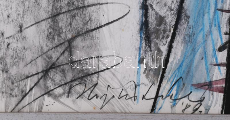 Hajdú László (1938-): Ék, 1989. Vegyes technika, papír. Jelezve balra lent. Hátoldalán autográf felirattal. 88x62,5 cm. Üvegezett fakeretben.