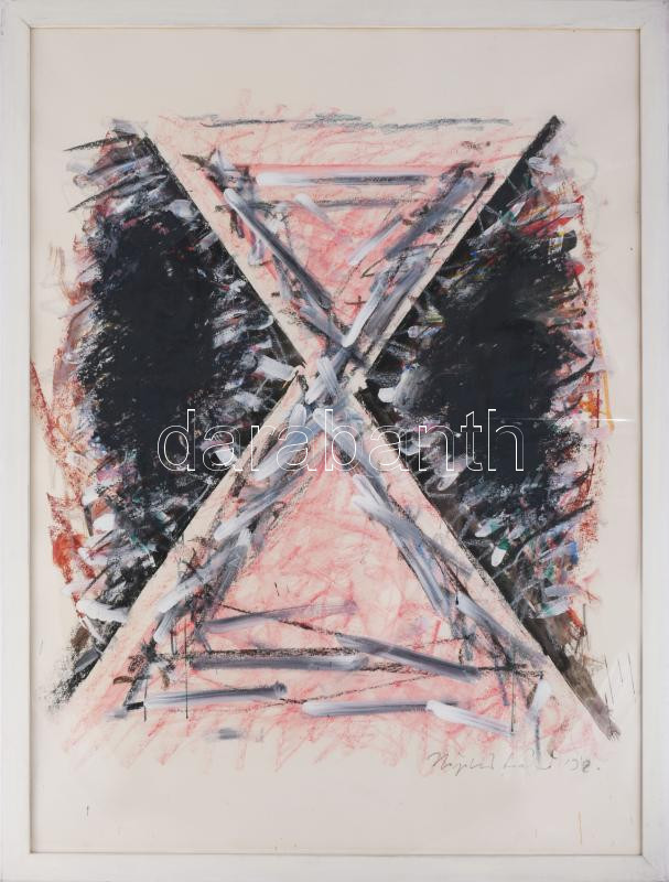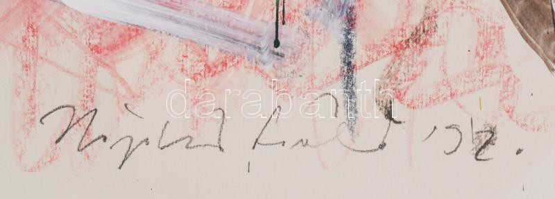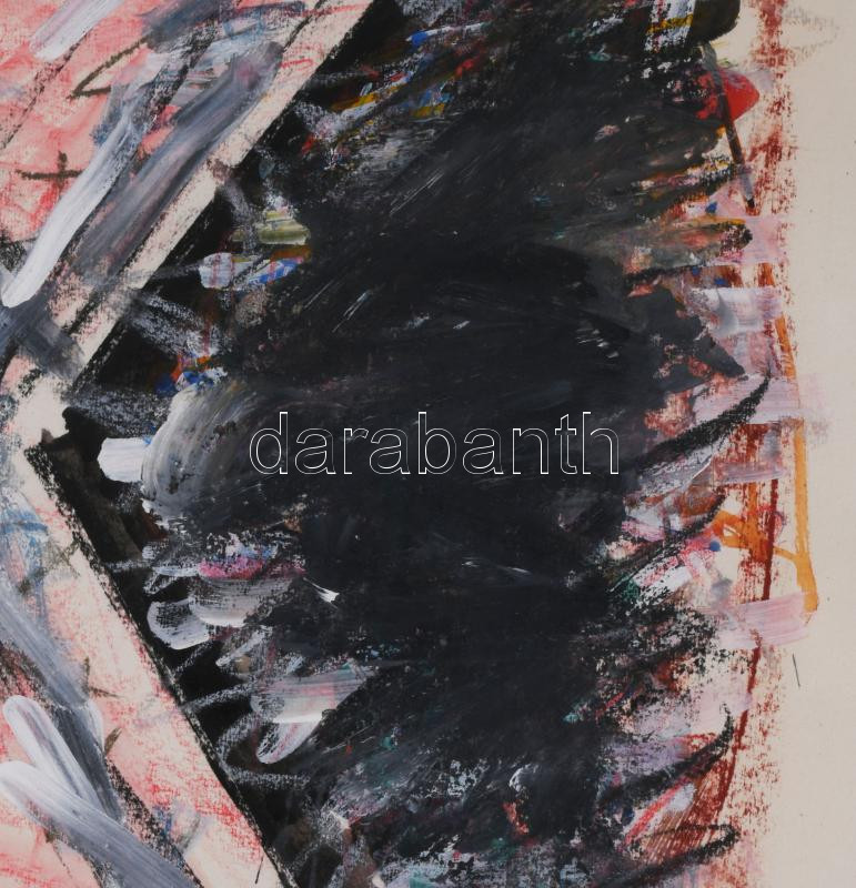 Hajdú László (1938-): Geo 02, 1992. Akril, kréta, papír. Jelezve jobbra lent. Hátoldalán autográf felirattal. 79x59 cm. Üvegezett fakeretben.